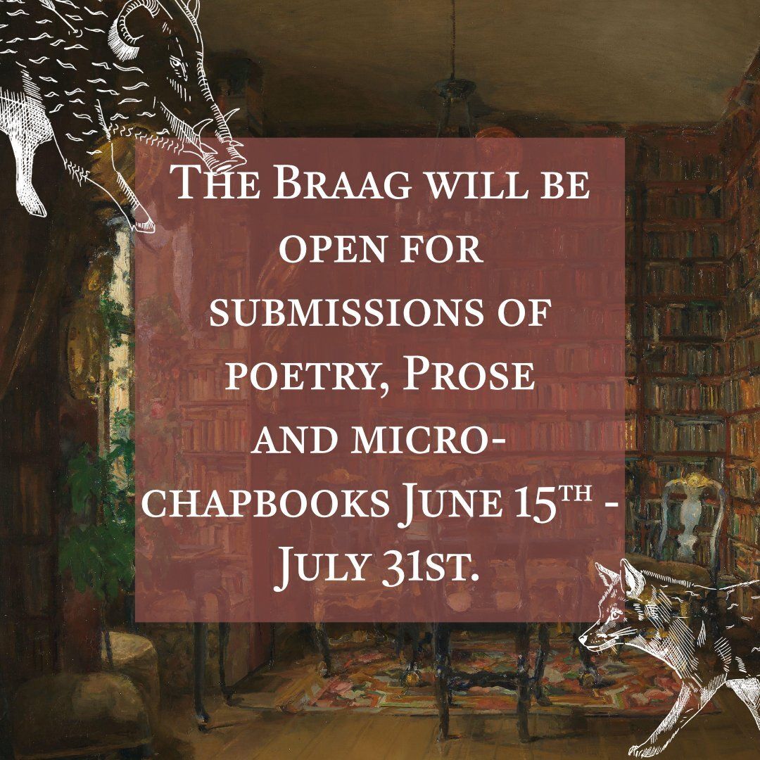 The Braag is open for submissions of Poetry Pamphlets, Prose Pamphlets and Novellas (up to 20,000 words) and microchapbooks until 31st July!